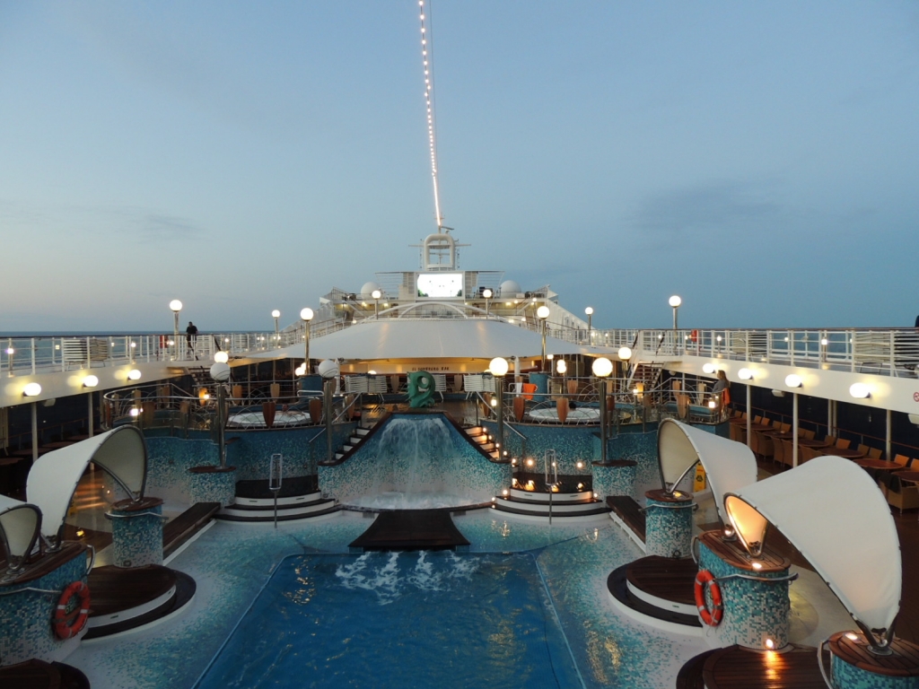 Se colocan de manera inmediata para evitar que los pasajeros ingresen o permanezcan en estas mientras el barco se balancea. Las redes no impiden que el agua de las piscinas trasvase los límites de contención que estas poseen, por lo que además se colocan cuerdas o cabos para alejar a algún pasajero curioso que se quiera acercar, ya sea por imprudencia, desconocimiento o tan solo para tomarse alguna foto en medio de dicho balanceo. Esta medida de colocación de redes también se lleva a cabo por las noches para evitar la utilización de las piscinas en horario no permitido. Si se prevé mucho oleaje el Capitán puede ordenar vaciar las piscinas para dotar de mas estabilidad al barco. Un elemento líquido en movimiento dentro del barco puede crear inestabilidad.