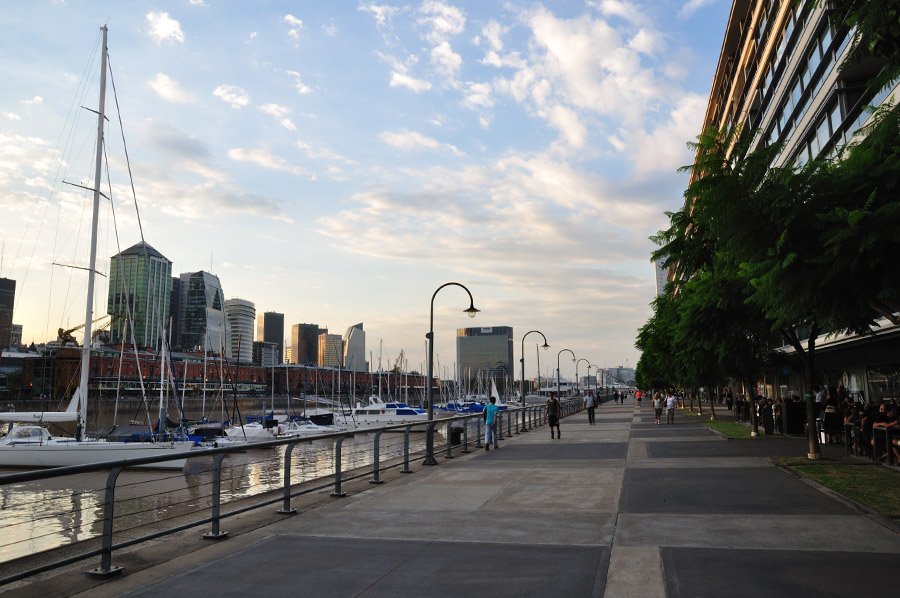 Ubicado junto al Río de la Plata, Puerto Madero es uno de los barrios más exclusivos de la ciudad y compone un entorno muy agradable para pasear y cenar en las terrazas de sus múltiples restaurantes.