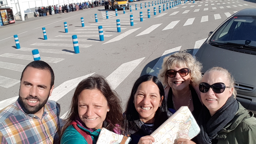 Llenas de entusiasmo arribamos a la ciudad de Barcelona muy ansiosas con ganas de encontrarnos por primera vez y en persona con nuestros amigos que solo conocíamos de modo virtual y resulto todo genial. Felices, recorrimos y nos abrazamos como si nos conociéramos de toda la vida. Luego de disfrutarnos y pasar un día soñado, con nostalgia y con la promesa de regresar muy pronto, nos fuimos con lagrimas en los ojos, pero completamente seguras que en muy poco tiempo nos volveremos a ver. Es divino poder viajar , conocer gente, hacerse amigos en el mundo, nada te enriquece mas que saber que donde vayas hay una mano y un abrazo para vos esperándote. Viajar en crucero es también esto de enriquecer nuestras almas , de rodearnos de quienes nos hacen bien y con quienes podemos disfrutar de grandes momentos !