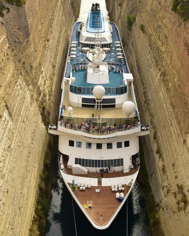 El Canal de Corinto (Grecia) es quizás una de las obras de ingeniería más espectaculares en el mundo, no sólo por su belleza y tamaño sino además por su impresionante y milenaria historia. El canal fue excavado sobre la roca del istmo de Corinto a finales del siglo XIX, y cuenta con una altura de más de 40 metros y una extensión de 6,3 kilómetros de largo debido a lo cual logra cortar efectivamente a un país en dos al separar a la región griega del Peloponeso de la Hélade -la Grecia continental-.Actualmente se estima que unos 12.000 barcos cruzan sus estrechas dimensiones cada año por. El canal de Corinto ahorra tiempo, combustible y acerca las distancias. La verdad es que el lugar ha quedado pequeño para los barcos mercantes y de grandes barcos de cruceros sobre todo con