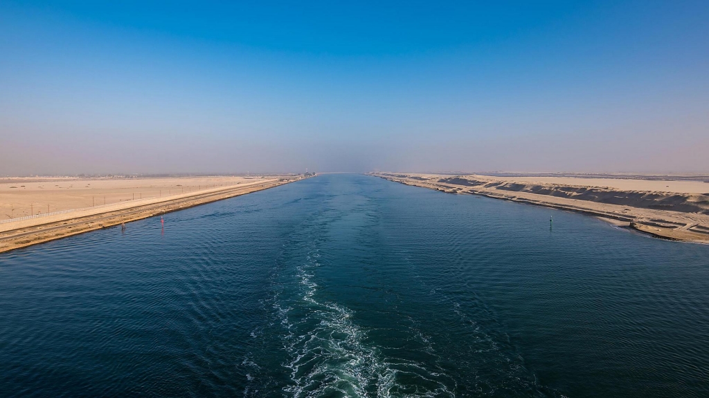 El Canal del Suez, que se extiende del Puerto de Said, pasa por Al – Ismailiya y concluye sobre el Mar Rojo en el Puerto de Tawfig (Cerca de la Ciudad de Suez), es la vía fluvial que hace posible pasar directamente del Mar Mediterráneo al Mar Rojo atravesando el Golfo de Suez, sin necesidad de bordear el continente africano como lo hacían los barcos dos siglos atrás cuando deseaban ir de Europa a Asia. Está localizado en una zona estratégica y es el canal más largo hasta el momento ya que tiene 163 km de largo pero tiene una estrechez considerada que solo permite circularlo en una sola dirección. Hace muy poco tiempo, se inauguró una ampliación realizada cuya inversión fue de 80.000 millones de dólares que consistió en la realización de un nuevo conducto de 35 kilómetros, paralelo al actual canal, y la ampliación de un tramo de 37 kilómetros ya existente, que permitirán agilizar el paso de los barcos en las dos direcciones y aumentar su número y su tonelaje. A partir de ahora podrán navegar barcos de hasta 66 pies (más de 20 metros) de calado. Esta ampliación permitirá aumentar el número de barcos que cada día pasan de 49 a 97 hasta el año 2023.