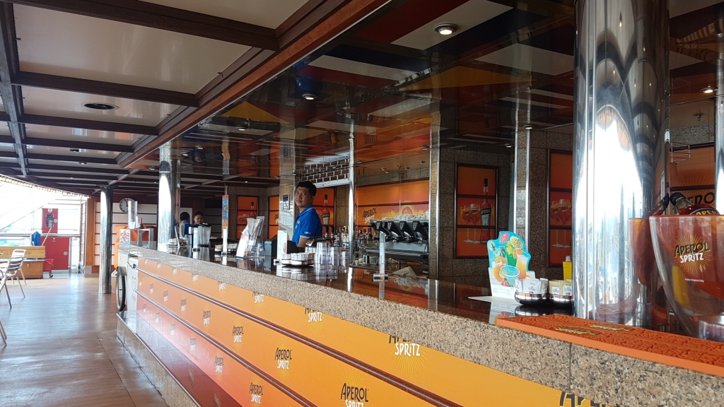 Si bien es un barco con el que ya tuvimos oportunidad de pasar a bordo 10 días recorriendo el Caribe allá por el año 2014, nos encontramos con una embarcación que nos costó reconocerla. No obedece esto a una falta de memoria o distracción, sino que hubo algunas reformas que se realizaron que nos sorprendieron para bien y muy acertadas que resaltaron la belleza de esta nave. Entre ellas, y creemos que la más pintoresca, es la inclusión de La Gelateria y Chocolatería “Amarillo” donde la modernidad de su mobiliario, los colores utilizados y la iluminación hacen que este espacio invite a visitarlo y degustar las dulzuras y exquisiteces que allí se ofrecen.