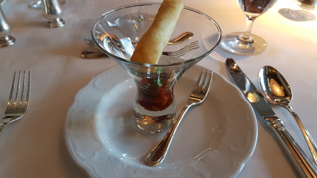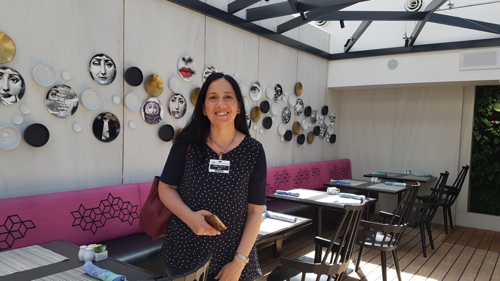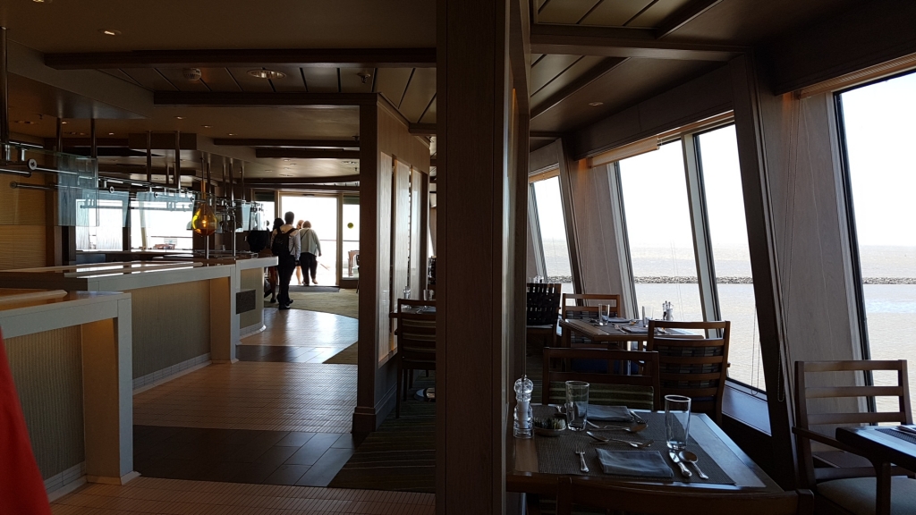 Luego de conocer los restaurantes de esta fantástica embarcación, fuimos invitados a comer en el Restaurante Waterside donde nos agasajaron con un delicioso menu de 5 pasos donde cada plato integrante del mismo, fué seleccionado y tomado de los diferentes restaurantes de especialidades que se encuentran en el barco, acompañado por un excelente Cabernet Sauvignon C Reserve, Paso Robles, California 2014.