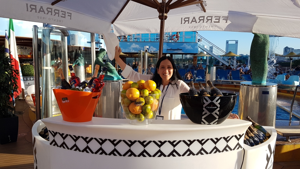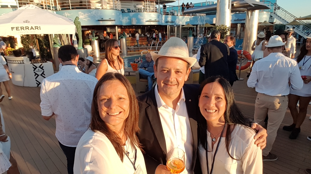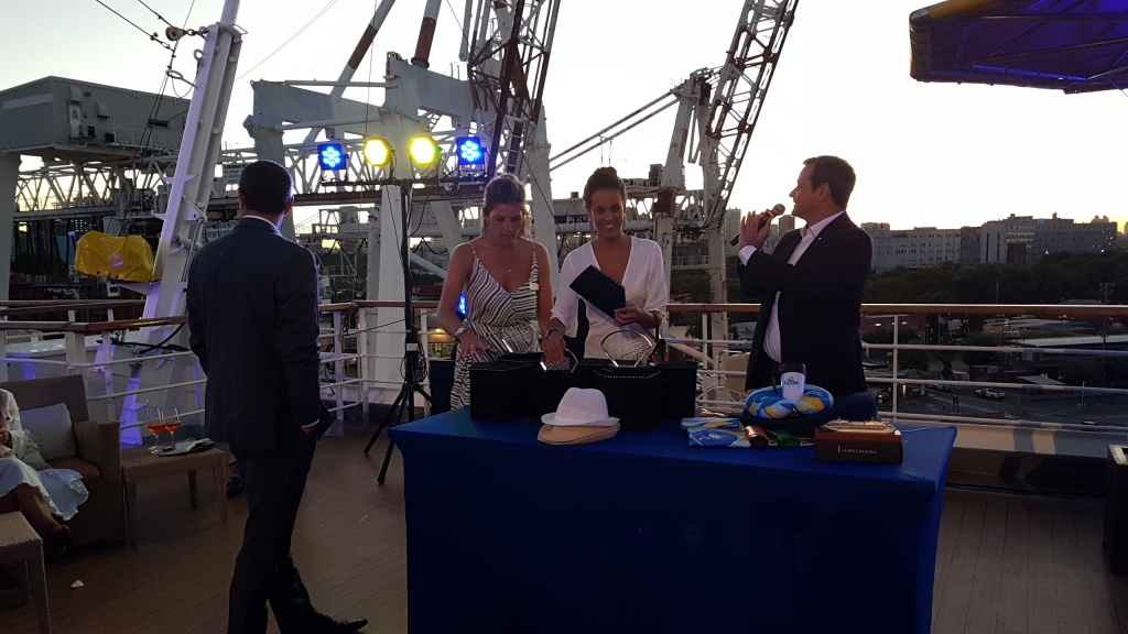 A bordo del Costa Favolosa, agencias de viaje, periodistas y clientes de Costa Cruceros, disfrutaron de un entretenido cocktail en la cubierta de la nave, una deliciosa cena al mejor estilo italiano y un show en el Grand Bar.