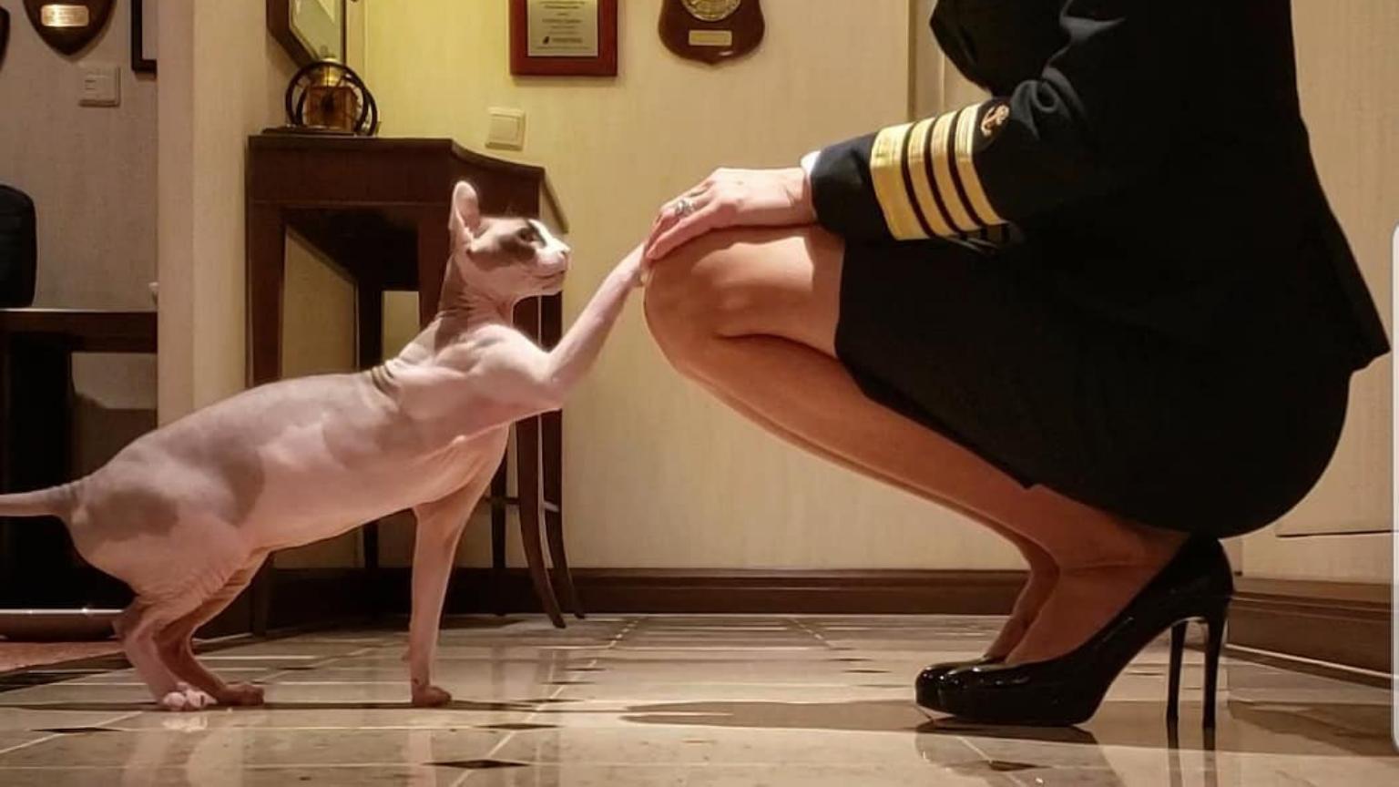 A pesar de que pueden tener reputación de ser fastidiosos y difíciles de complacer, resulta que los gatos son muy buenos viajeros, especialmente este Elf Sphynx llamado Bug Naked.