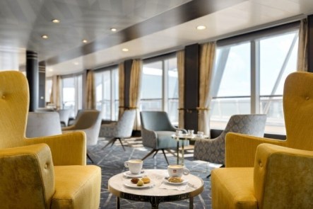 El cambio más destacado es la nueva área de cafetería y la incorporación de un nuevo y espectacular salón con vistas panorámicas al mar en la Cubierta 14.