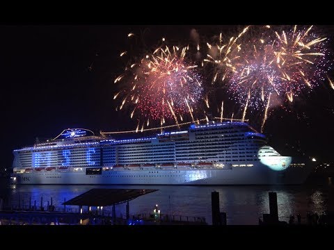 Luego tomó el centro del escenario en el río Elba, la madrina Sofía Loren nombrando oficialmente su decimoquinto barco de MSC Cruceros, seguido de una exhibición de fuegos artificiales. El MSC Grandiosa pasó a través de una espectacular puerta azul noche para regresar al muelle, simbolizando la entrada del nuevo barco al mundo.