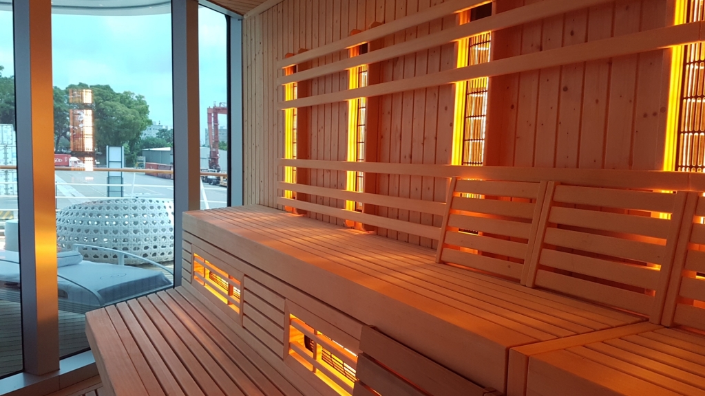 Con 55,254 toneladas , diseñado y pensado para tan solo 750 huéspedes, este barco que solo cuenta con suites con balcón , mantiene uno de los indices mas altos de espacio y tripulantes por huéspedes.