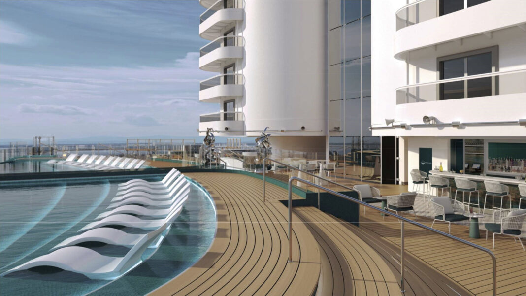 Un área de piscina mejorada y ampliada y una terraza para tomar el sol que ofrecerá 2.000m² de espacio, con una piscina privada más grande y un nuevo hidromasaje panorámico con ocho asientos y chorros individuales, además de un hidromasaje estándar.