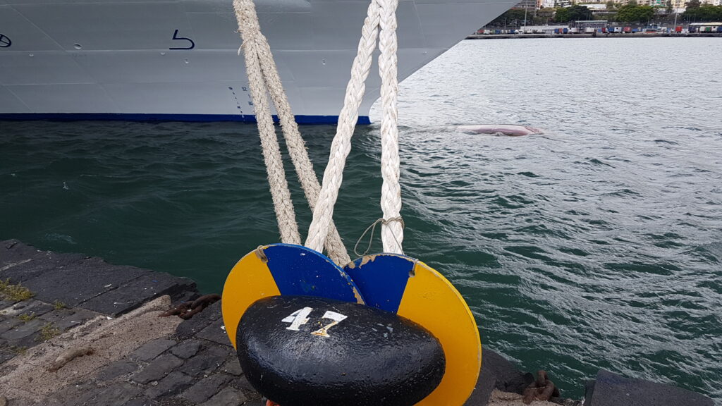 Bueno, las líneas de amarre son lo único que conecta la distancia entre el territorio del puerto y el barco.