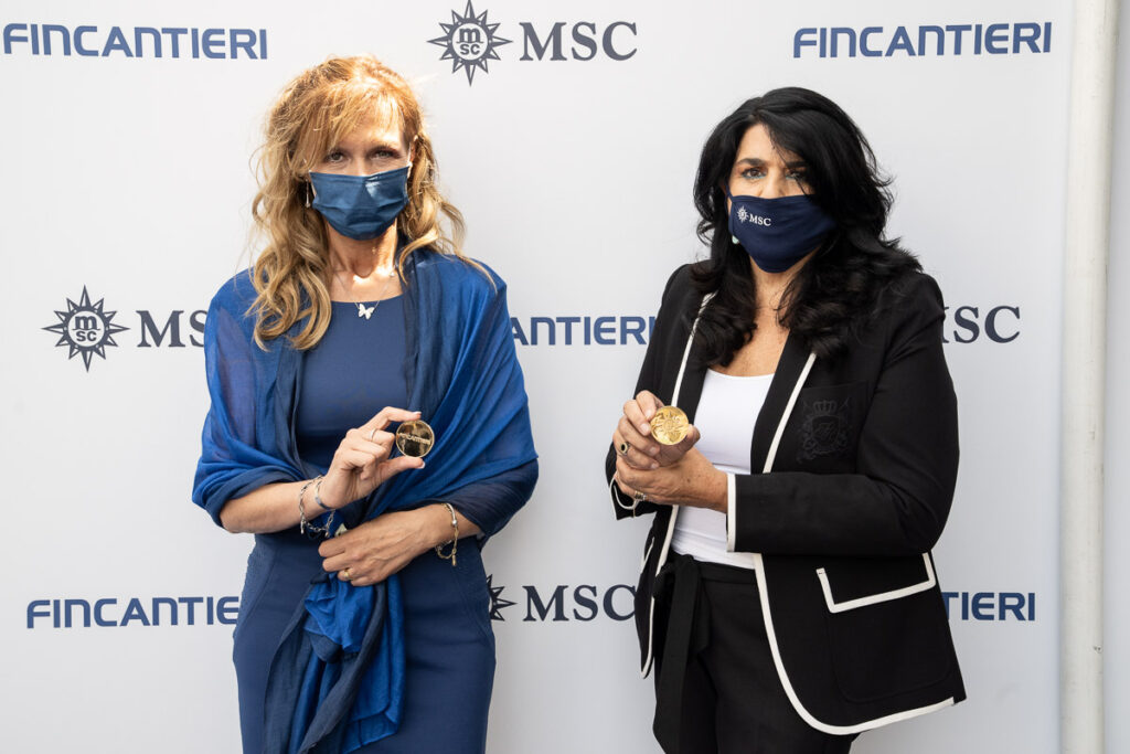 Las antiguas empleadas Monica Somma, Category Manager – Retail, MSC Cruises y JoletteVincenzi – Production Supervisor de Fincantieri realizaron el tradicional ritual marítimo como madrinas cuando colocaron dos monedas dentro de la quilla del barco como un signo histórico de bendición y buena fortuna para la construcción del barco y su futura vida en el mar.
