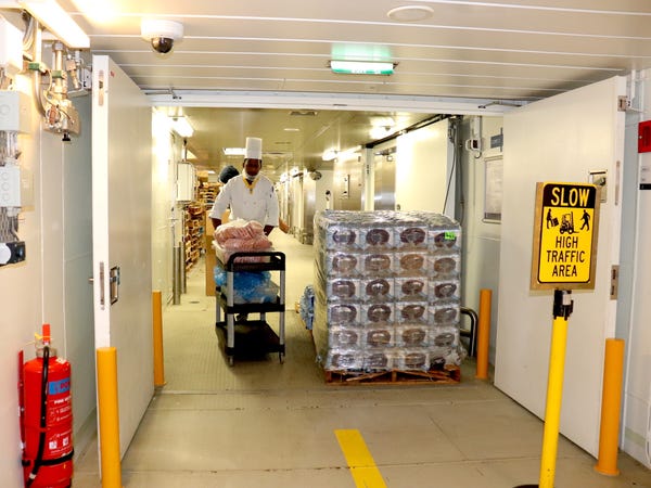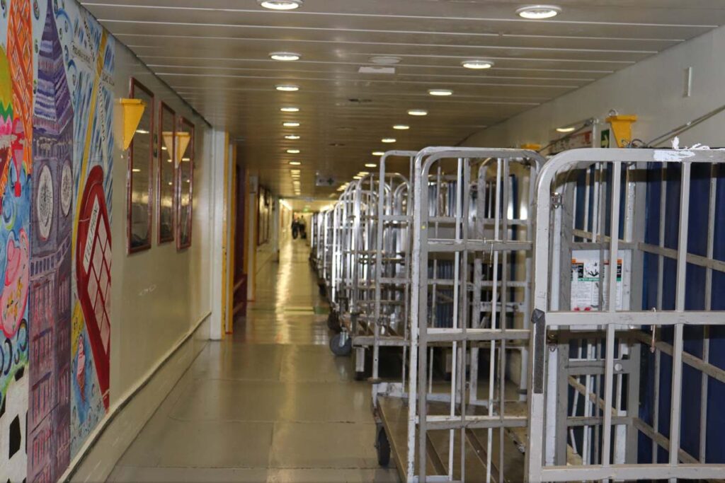 La I-95 probablemente se ve como te la imaginas: un extenso pasillo que ocupa la totalidad del largo del barco con varias puertas y espacios de almacenamiento a cada lado que conducen a todo tipo de lugares de los barcos de cruceros.