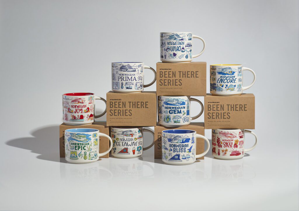 Las tazas coleccionables de edición limitada se venderán exclusivamente en los cafés Starbucks a bordo de Norwegian Bliss, Norwegian Encore, Norwegian Epic, Norwegian Gem, Norwegian Getaway, Norwegian Joy, Norwegian Sky, Norwegian Prima y el Norwegian Viva, el segundo barco de la increíble Clase Prima de NCL, que se estrenará próximamente.